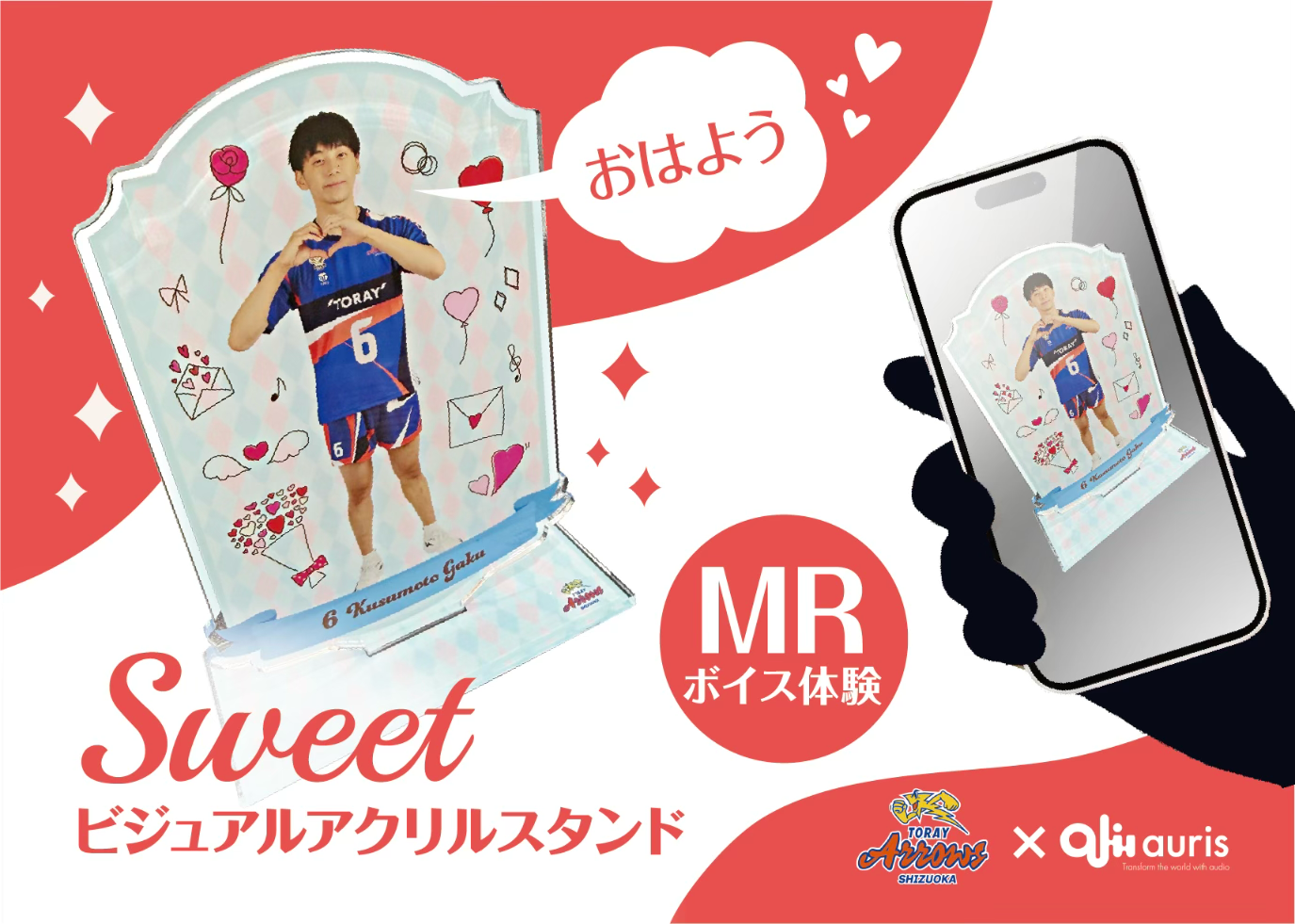 2月14日(土)発売の東レアローズ静岡「SWEETビジュアルアクリルスタンド」をご購入いただき、「Auris」アプリから選手の限定アクリルスタンドを読み取ると、アプリを通じて選手の声を聴くことができます。